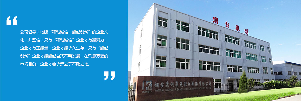 煙臺康利康復器材制造有限公司成立于1993年,是煙(yan)臺市科委直屬國有企業,2006年改制(zhi)為股(gu)份制(zhi)企業(ye);公司自成立(li)以(yi)來一(yi)致(zhi)致(zhi)力于手(shou)動輪椅(yi)車(che)、電動輪椅(yi)車(che)、手(shou)搖三輪車(che)、手(shou)動護理(li)(li)床(chuang)、電動護理(li)(li)床(chuang)、座(zuo)便(bian)椅(yi)、洗浴椅(yi)、助行器(qi)、拐杖(zhang)、等康(kang)復(fu)輔助器(qi)具(ju)的(de)研(yan)發、生產和銷售;經過20多年(nian)的不懈努力,并在各(ge)級政府的關懷和支持下(xia),我們先后研發和生(sheng)產了(le)130多個(ge)品種(zhong)的(de)康復(fu)輔助器具,產(chan)品銷售覆蓋(gai)國內95%以上的省市自治區,國外十多(duo)個國家和地區,得到了各級政(zheng)府及最(zui)終用戶(hu)的信賴與肯定,其中手動輪椅(yi)車、電動輪椅(yi)車、多(duo)功能護(hu)理床,智(zhi)能驅動倒擋(dang)裝置(zhi)、助行、拐杖等系列(lie)產(chan)品(pin)已30多項獲(huo)得國家專利保護。